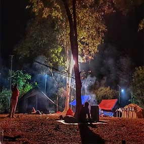 In this package you will get tent, bonfire, dinner and breakfast, boating pick up-drop.